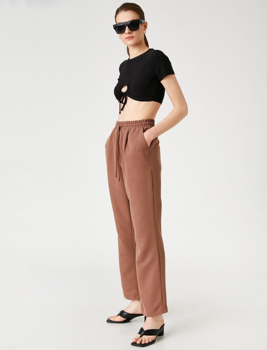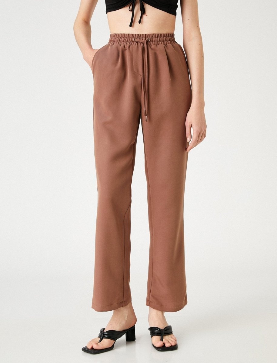 High waisted. Full Length. Ribbed elastic waistline. Drawstring at waist. Straight leg. Soft and comfortable ecofriendly fabric
