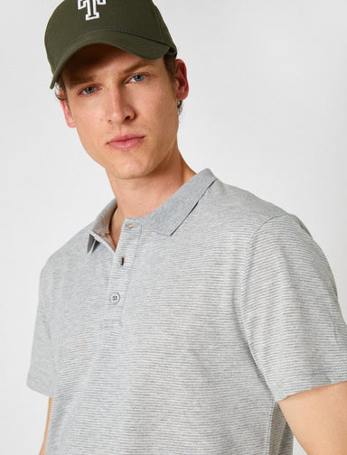 Another take on subtle polo shirts that go well with almost anything. Grey yarn-dye stripes in jersey knit is abot more for a casual look. Easy to ...
