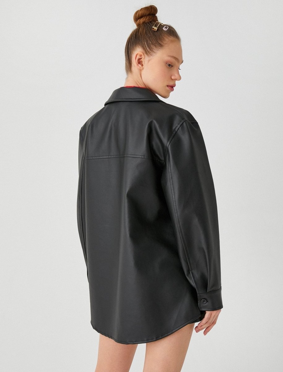 Oversize Fit. Point Collar. Full Front Button Closure. Two chest pockets with flaps.