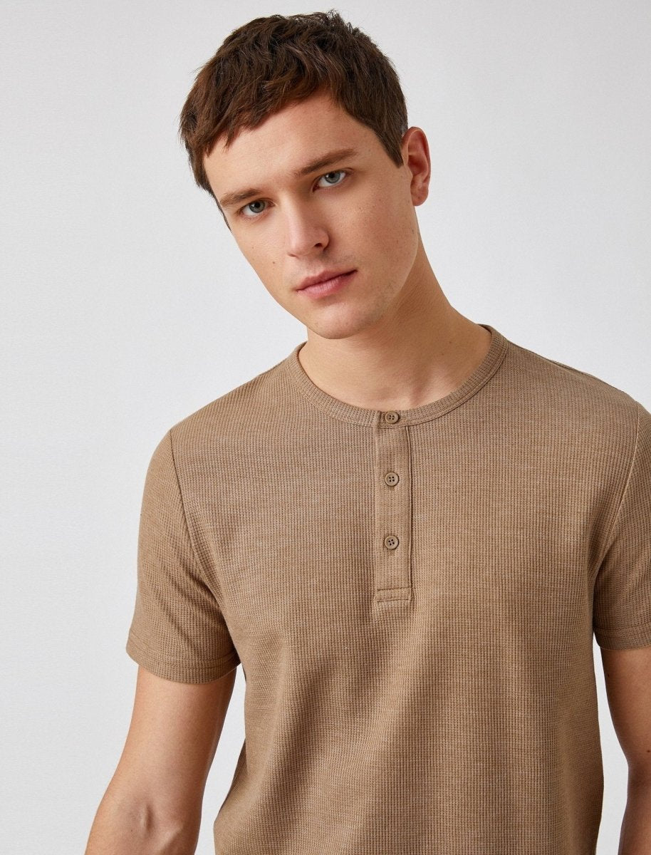 Keep it simple on weekends with these waffle henly t-shirts made from a very functional cotton blend. Our tapered regular fit with a classic crew neck finished with a henley style button placket. Every guy needs this short sleeve Henley as part of their heavy rotation which is an easy-to-wear wardrobe staple that combine classic and contemporary styles.