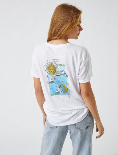 Featuring the iconic sun graphic at the front. Made from a soft, light rayon blend. Relaxed Fit. Slightly Dropped Shoulders. Rib-knit crew neck.. ...