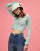 Crop Waffle Cardi in Teal Green