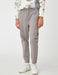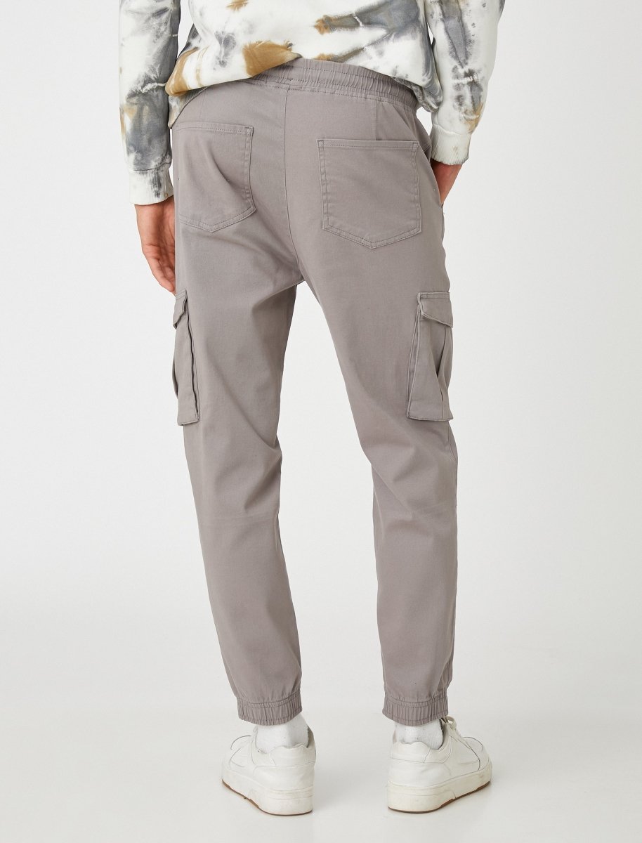 Slim Silhouette. Fully Elastic Waistband and drawstrings. Decorative front fly. Side Cargo Pockets. Back Patch Pockets. Cuffed hems.