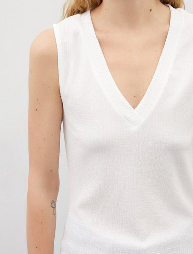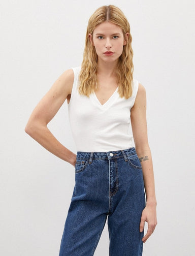Refresh your collection of tops with this sleeveless V-neck blouse, simple yet essential for the season!V-neck. Sleeveless. Soft and fluid fabricMa...