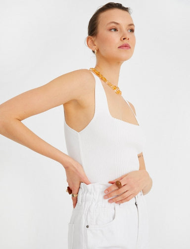 A full-length U-neck tank top with ribbed detailing and wide straps. Perfect for layering underneath a sweater or cardigan, or on its own in the wa...