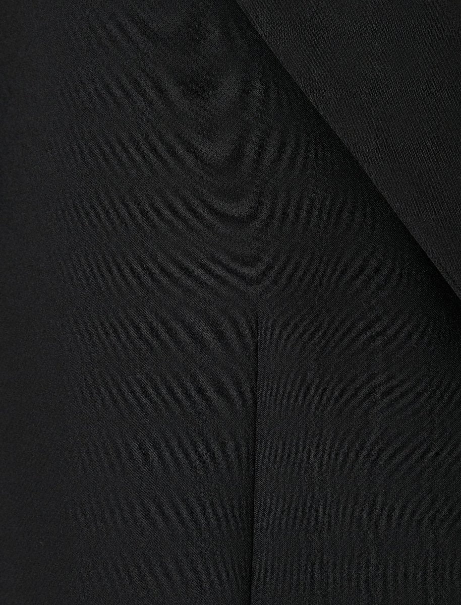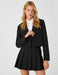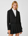 Make a statement wearing this must-have Black Cropped Blazer from KOTON. This crop top blazer is sure to be your go-to piece. Tailored in a sleek black fabric and featuring tailored details like peak lapels, this women's cropped blazer jacket offers an extra hint of polish with its slimming fit. It's got everything you need for that power look, no matter where life takes you next. Just team it with your favorite work pants or skirt and complete the look with heels or court shoes—you'll be ready to take on the world in winning style.