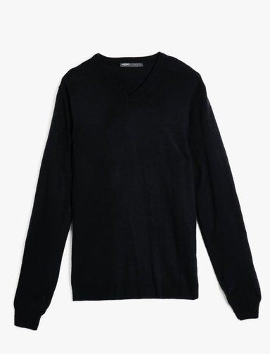 Basic V Neck Sweater in Navy Navy V-neck. Long sleeves with rib-knit cuffs, collar, and hem. 100% Acrylic True to size. Considered a Regular fit; c...