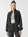 Elasticized trim. Cropped silhouette. Zip Front Closure.