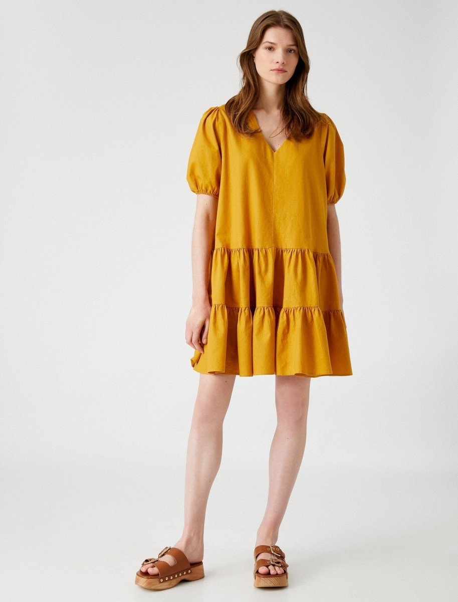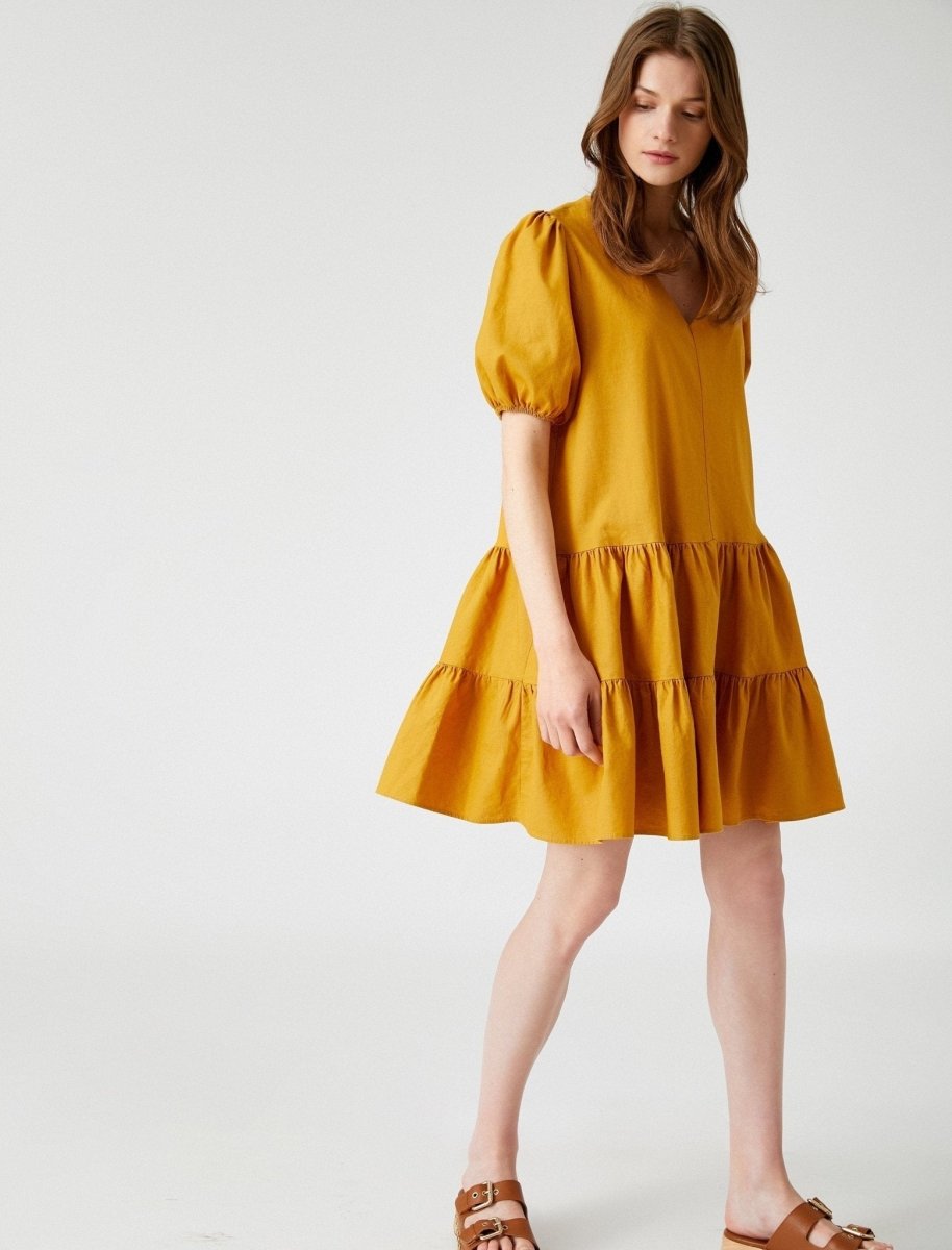 This short dress is made of Linen-Cotton Blend fabric. Perfectly comfortable!
