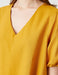 V neckline, and 1/2-length balloon sleeves with puff at shoulders and narrow elastic at cuffs. Unlined.