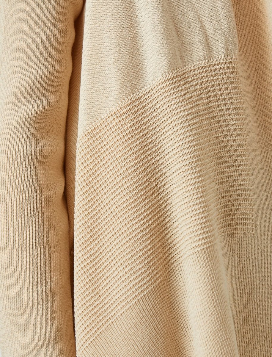 Interlocked ribbed placket, collar, hem, and cuffs. Made with cozy and super soft ribbed knit fabric