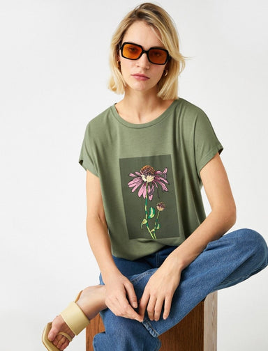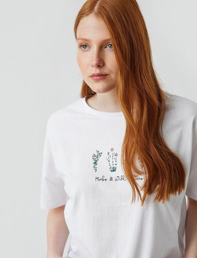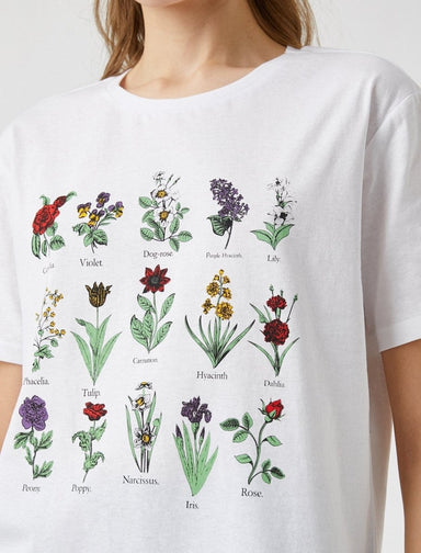 Minimalist Wildflower Graphic at Front.Crew Neck. Classic Fit.Machine Wash Cold. Imported. Model is 177 cm Wearing size- (S) (Chest 80 cm / Waist 5...