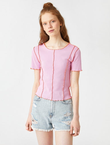 A trendy crop top that was designed to refresh your wardrobe.Exposed seam detailing. Round neckline. Fitted. CroppedMachine Wash Cold. Imported. Mo...