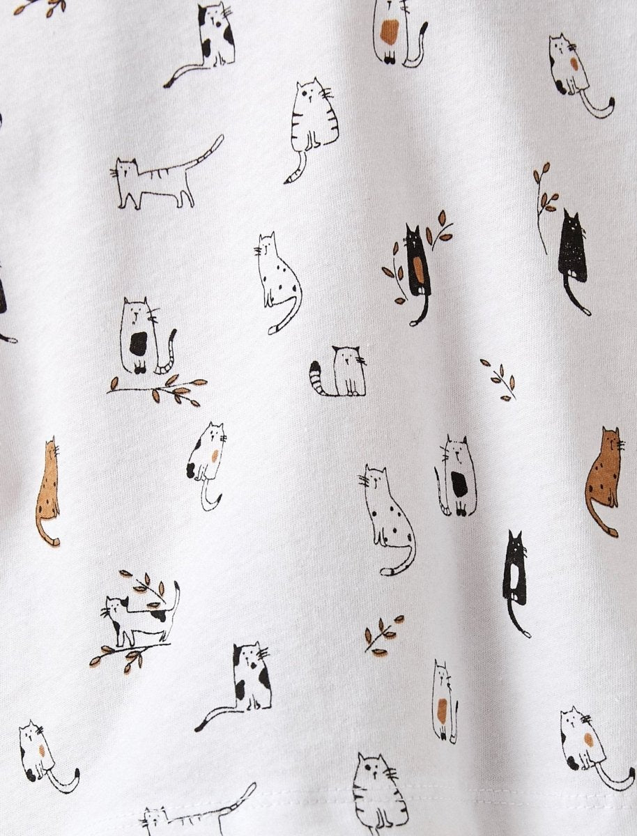 Allover Cats Print T-shirt in White