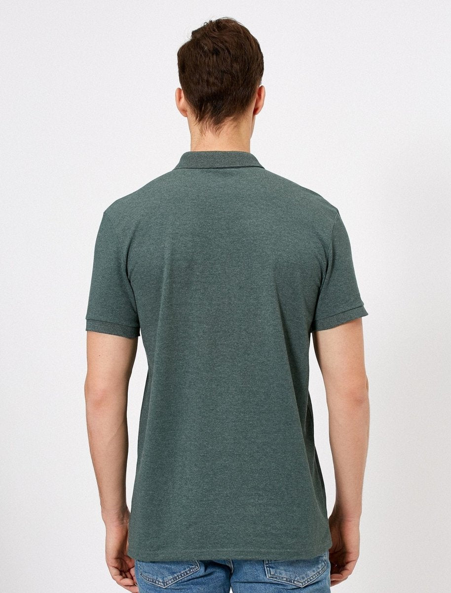 Rib-knit collar. Short sleeves with rib-knit openings. Two-button placket. Soft-washed, pique-knit cotton blend, with metal placket at chest.