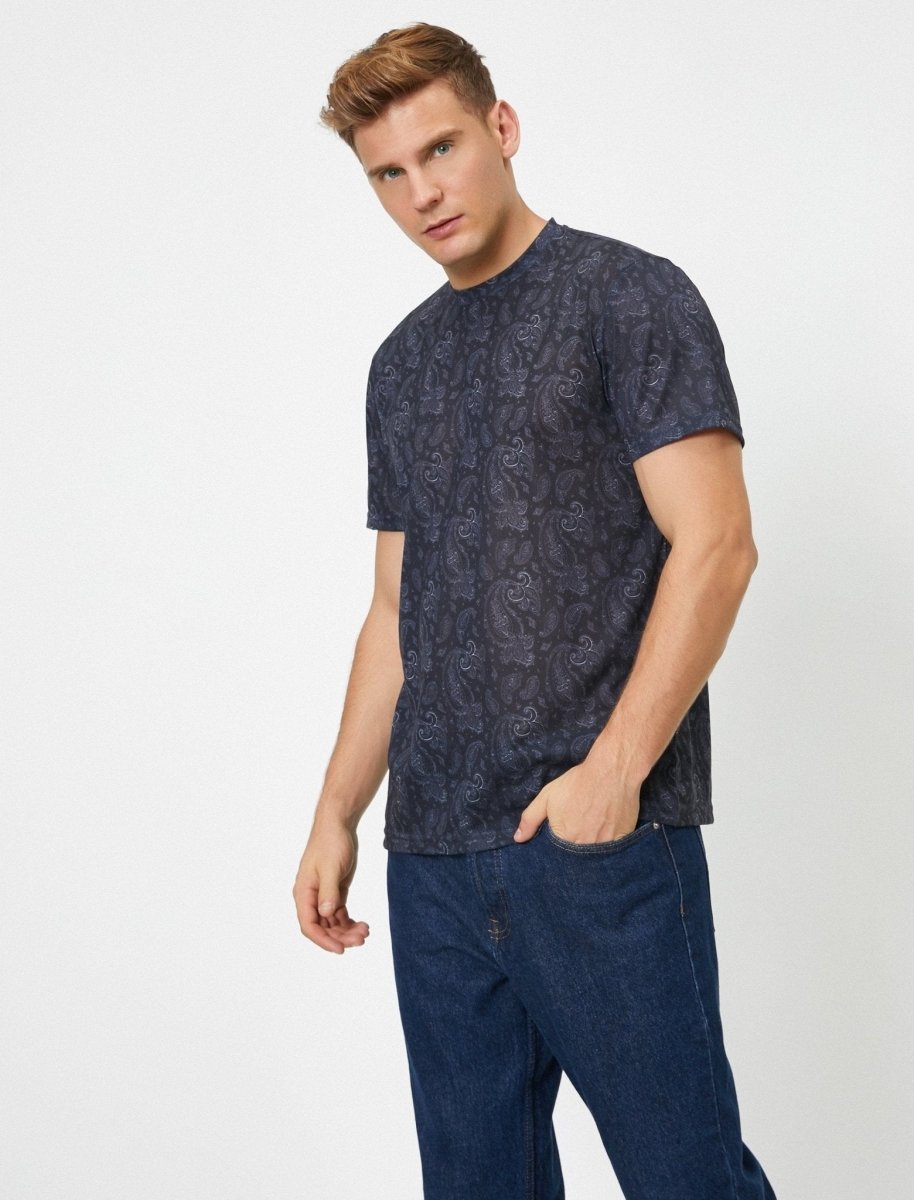Crew Neck. All Over Paisley Print. Regular Fit. Soft Touch.