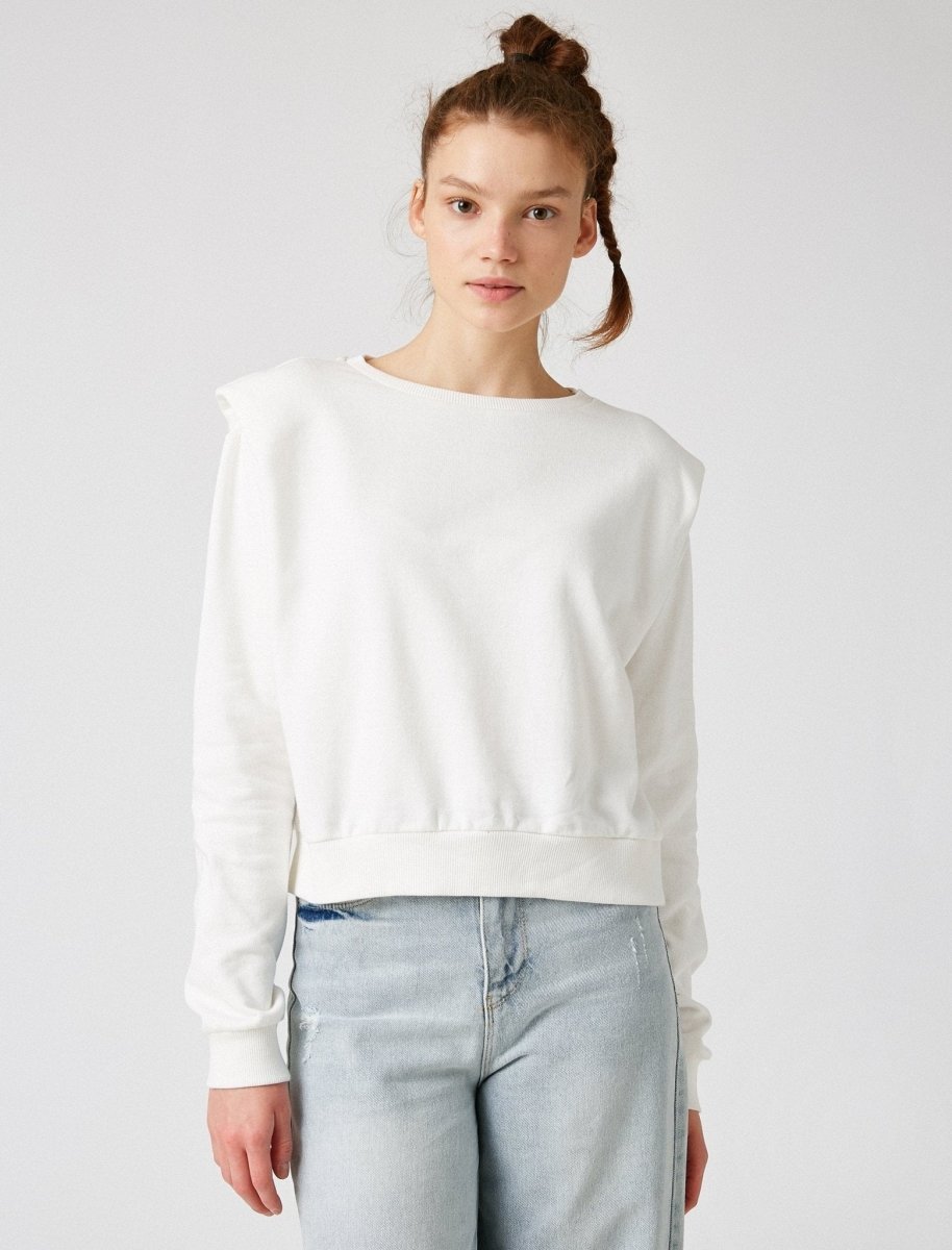 Round neck. Ribbed cuffs. Shark fin detail at shoulder.Relaxed fit.