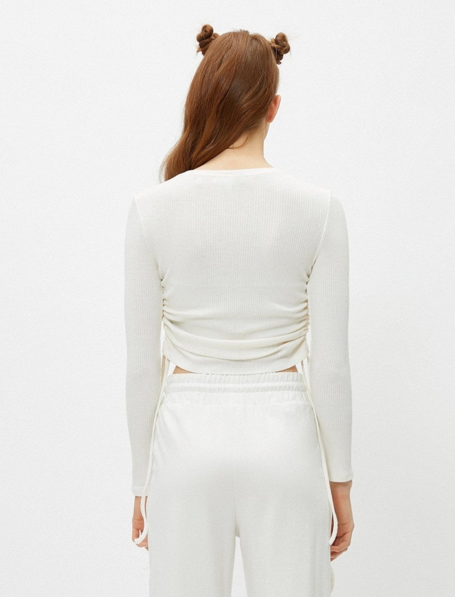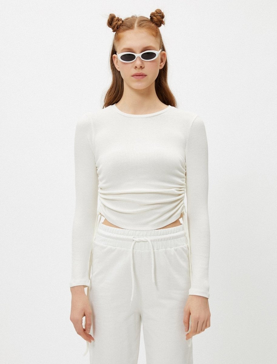 Side-Ruched Crew Neck Tee in White