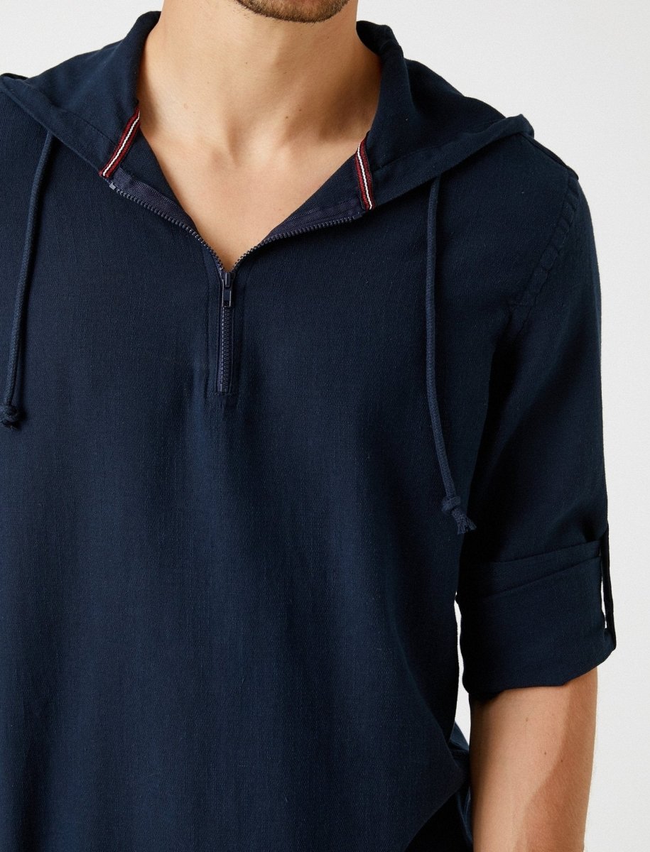 Regular Fit Overshirt with adjustable hooded collar, long sleeves, and tab. Half Front Zip Closure.