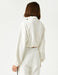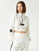 Relaxed fit, hits at the natural waist. Mock neck. Half zip front closure