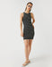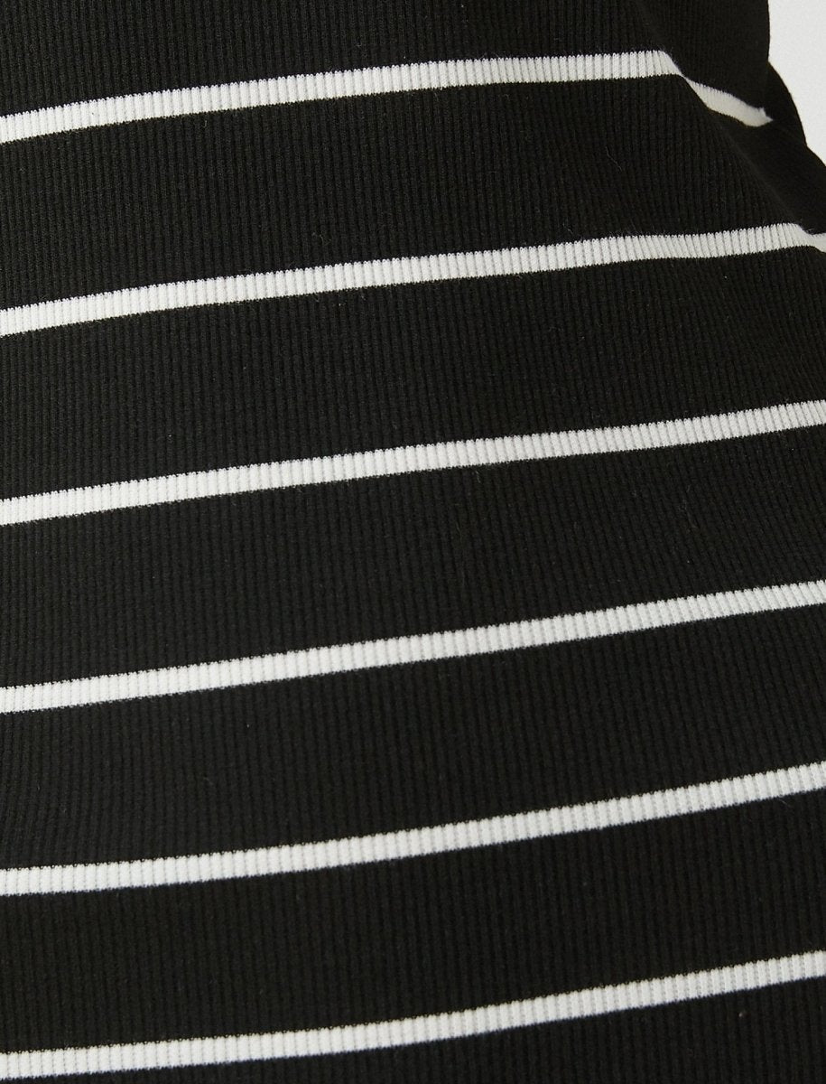 High Neck line and back. Ribbed Stretch Fabric. Slim Fit. Mini Length.