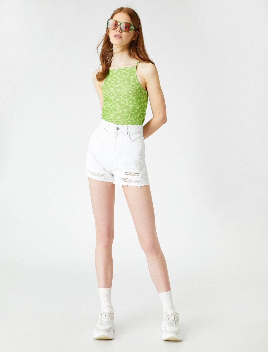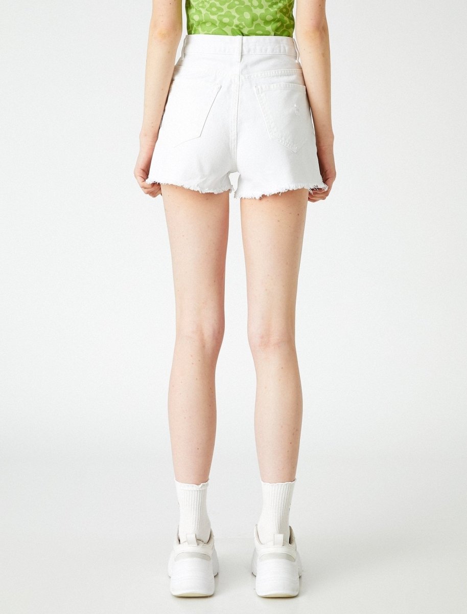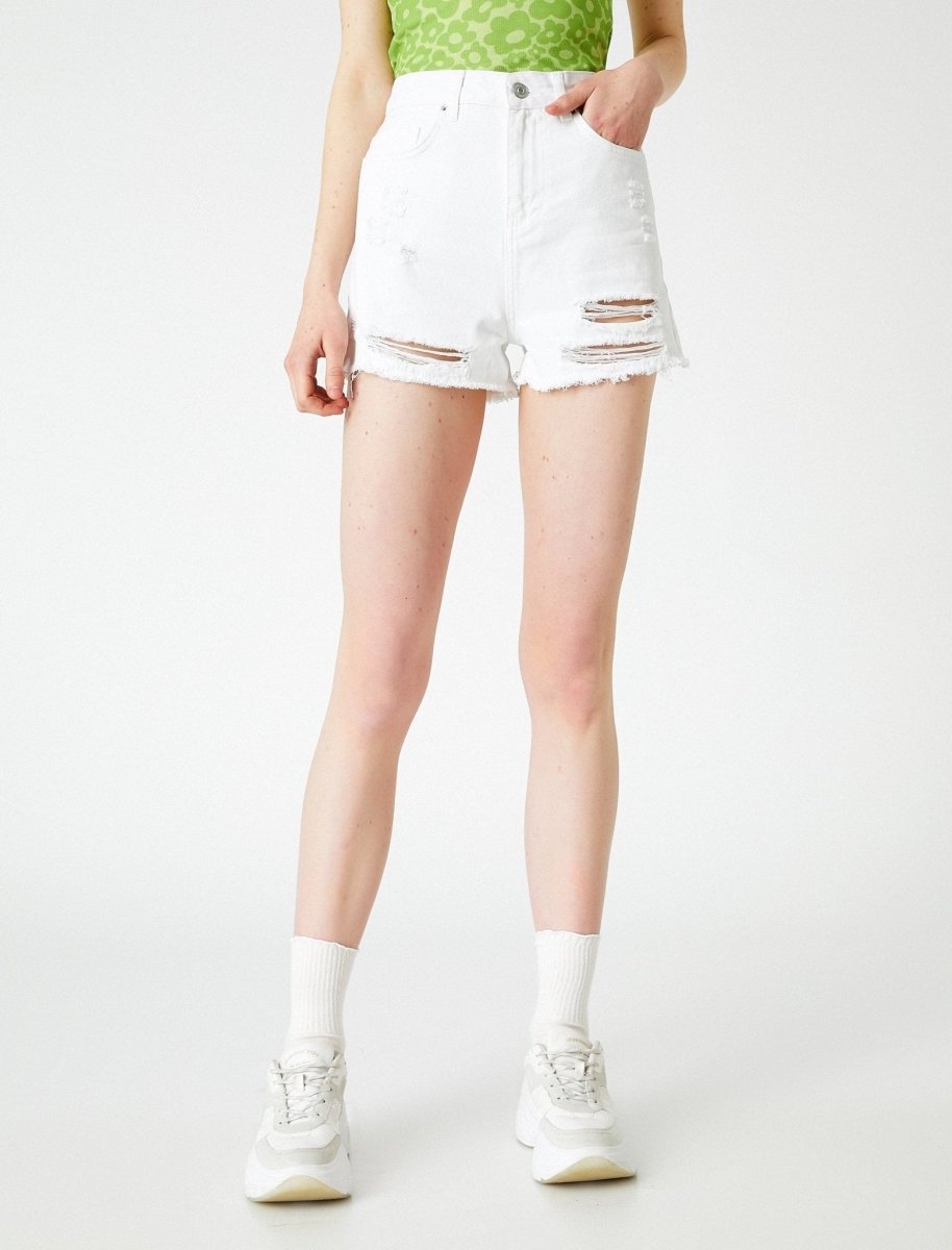 High Rise Destructed Jean Shorts in White
