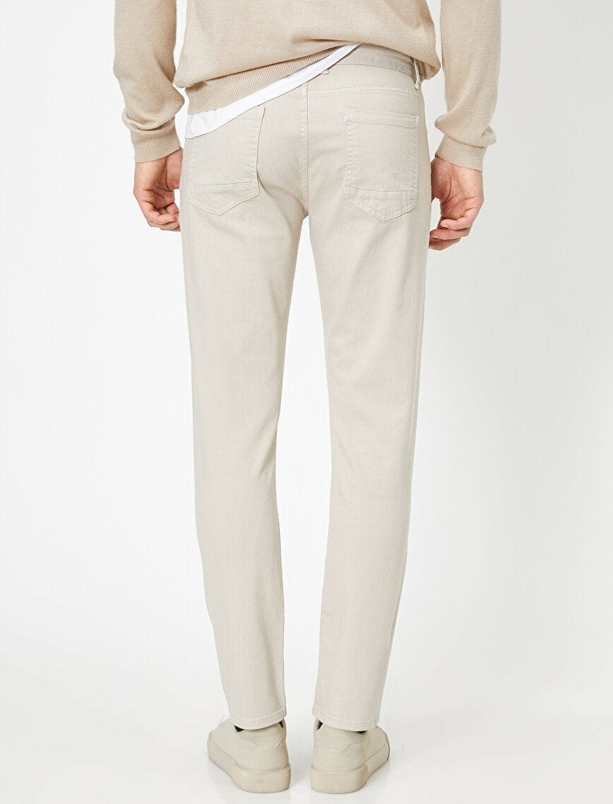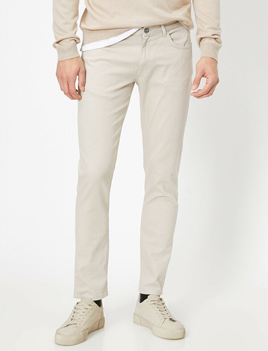 Slim leg, Mid-rise, Slightly stretch, 5 pockets, Zipper fly.